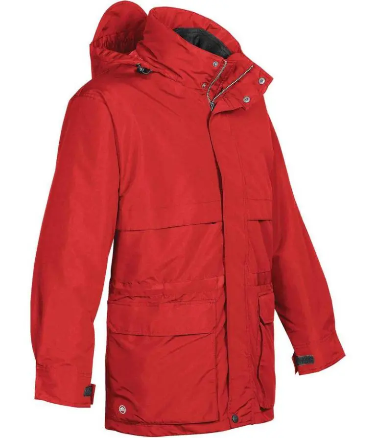 High performance, durable D/W/R exterior shell, all-season 3-in-1 jacket offers versatility with a zip-out polar fleece liner and a stowaway hood, to accommodate for a variety of climates.
